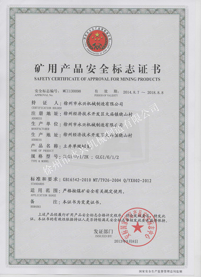 您的當(dāng)前位置:首頁 > 關(guān)于永興 >安標證書